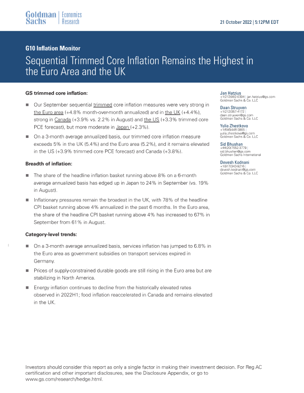 【Goldman Sachs】【20221021】al Trimmed Core Inflation Remains the Highest in the Euro Area and the UK-10页