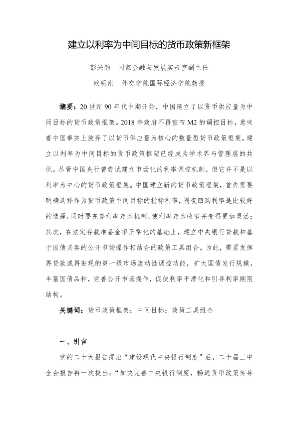 【国家金融与发展实验室】【2024】建立以利率为中间目标的货币政策新框架-26页