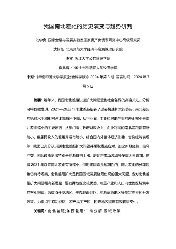 【华南师范大学学报(社会科学版)】【20240705】我国南北差距的历史演变与趋势研判-20页