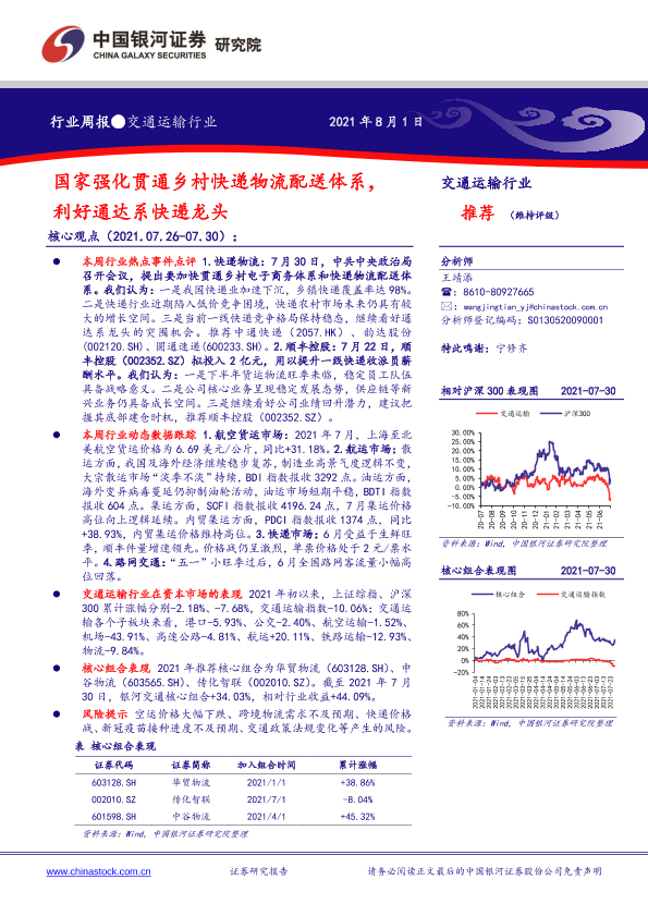 【银河证券】【20210801】交通运输行业:国家强化贯通乡村快递物流配送体系,利好通达系快递龙头-20页