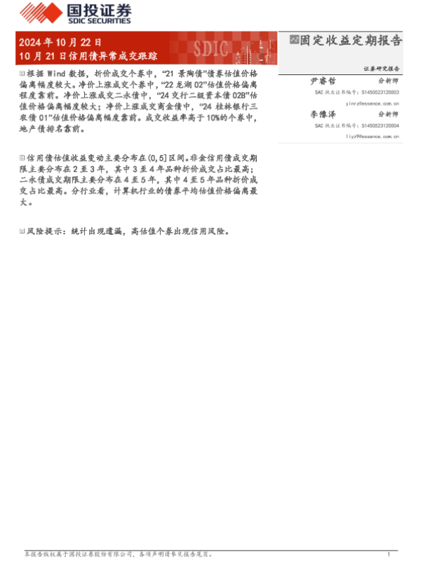 【国投证券】【20241022】10月21日信用债异常成交跟踪-10页