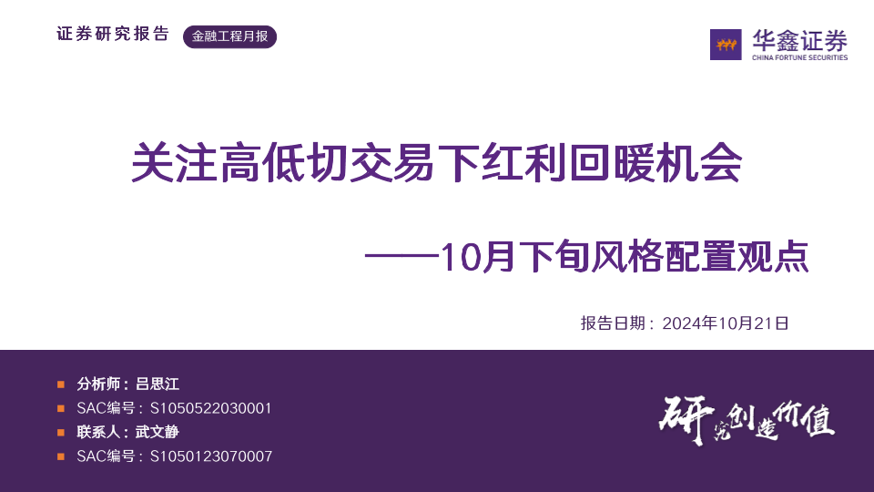 【华鑫证券】【20241021】10月下旬风格配置观点:关注高低切交易下红利回暖机会-15页