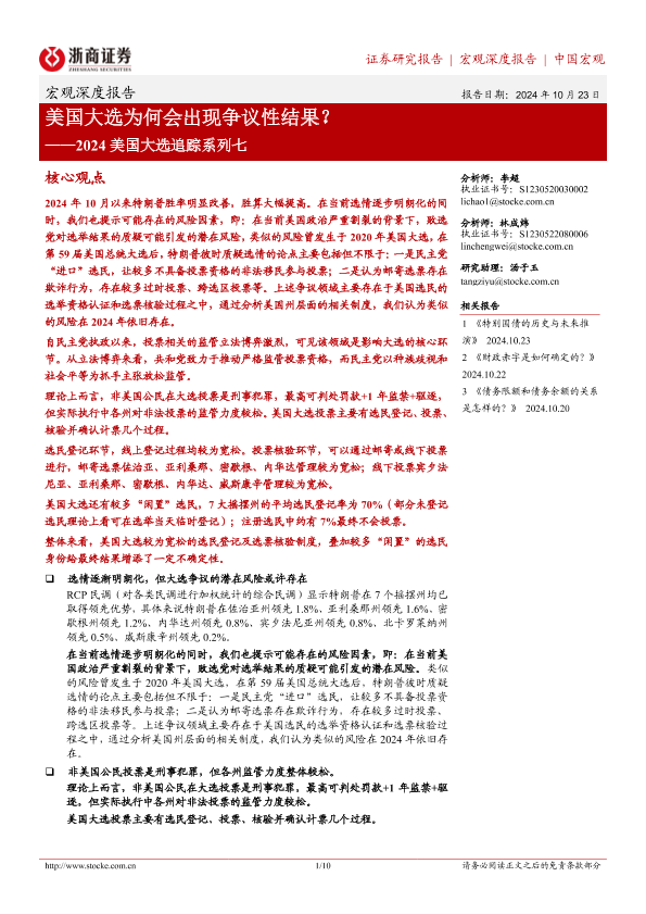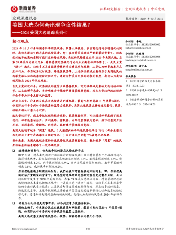 【浙商证券】【20241023】2024美国大选追踪系列七:美国大选为何会出现争议性结果?-10页