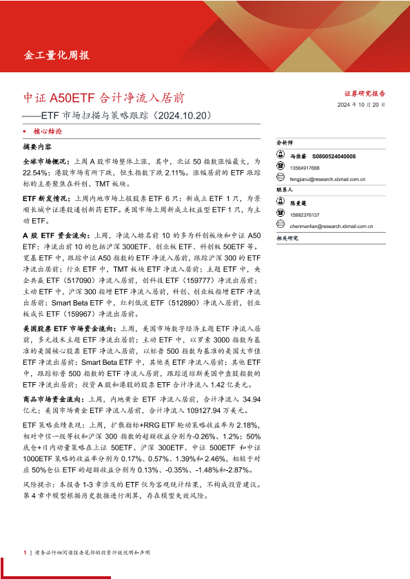 【西部证券】【20241020】ETF市场扫描与策略跟踪:中证A50ETF合计净流入居前-20页