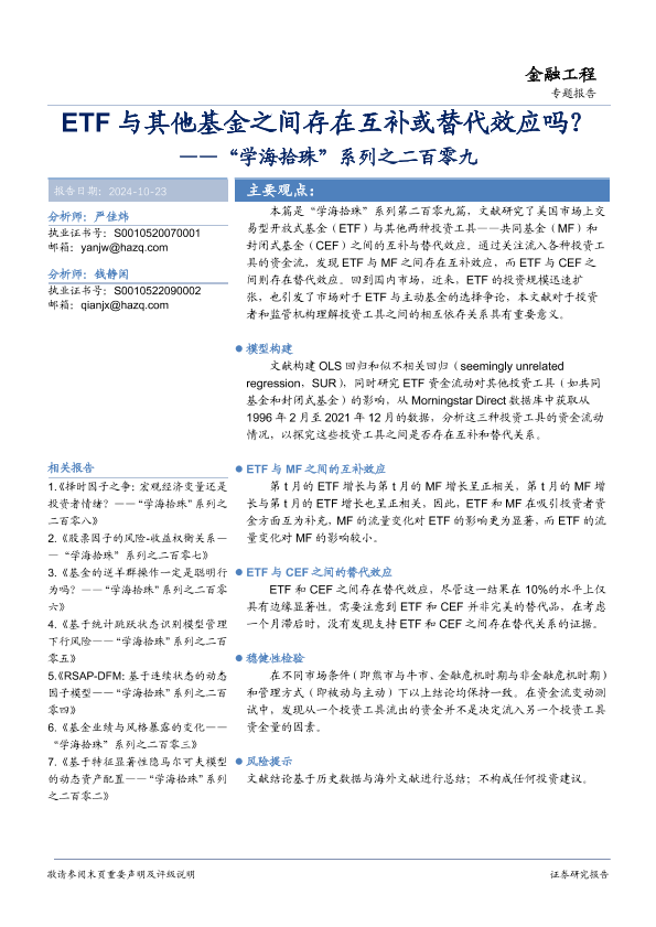 【华安证券】【20241023】ETF与其他基金之间存在互补或替代效应吗?-19页