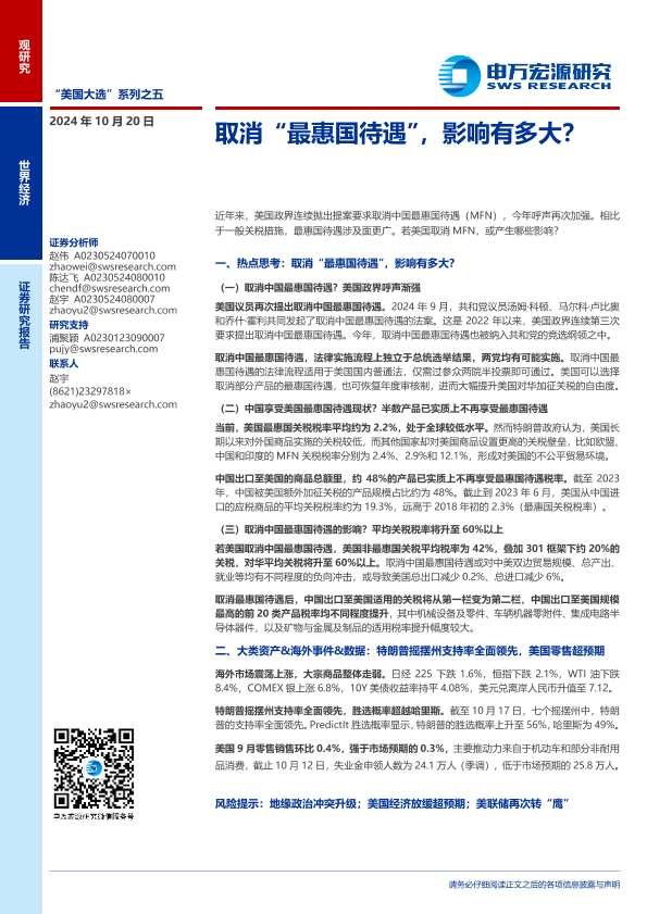 【申万宏源】【20241020】“美国大选”系列之五:取消“最惠国待遇”,影响有多大?-22页