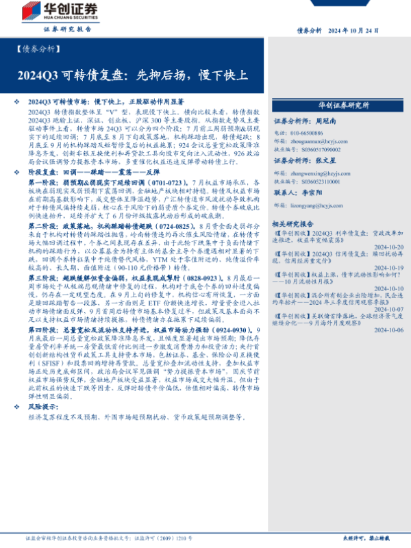 【华创证券】【20241024】2024Q3可转债复盘:先抑后扬,慢下快上-15页
