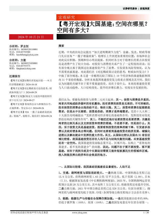 【粤开证券】【20241021】【粤开宏观】大国基建:空间在哪里?空间有多大?-30页