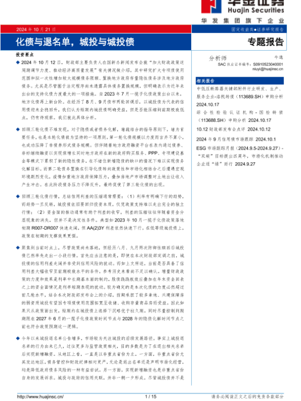 【华金证券】【20241021】专题报告:化债与退名单,城投与城投债-15页