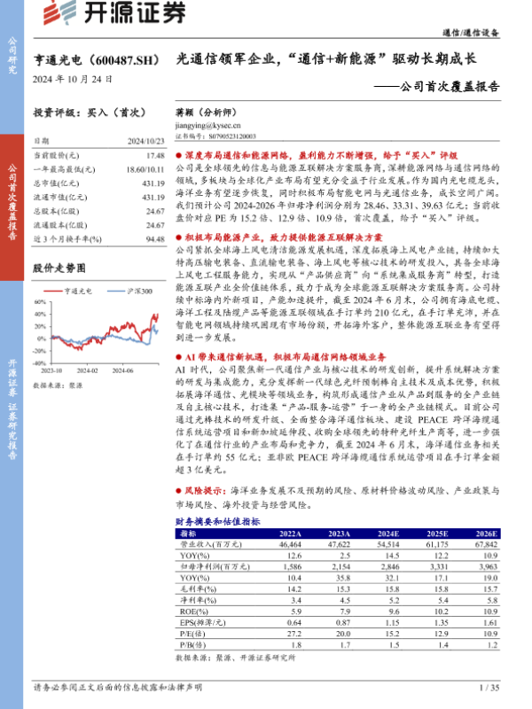 【开源证券】【20241024】亨通光电(600487)公司首次覆盖报告:光通信领军企业,“通信+新能源”驱动长期成长-35页