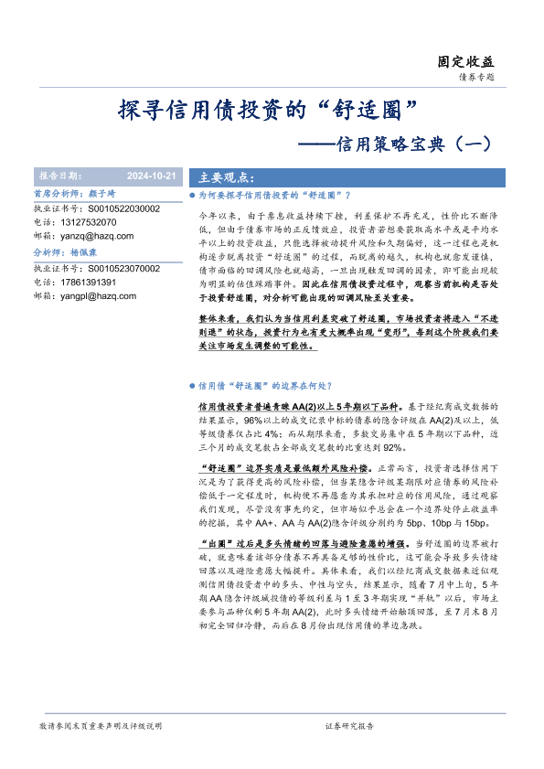 【华安证券】【20241021】信用策略宝典(一):探寻信用债投资的“舒适圈”-11页