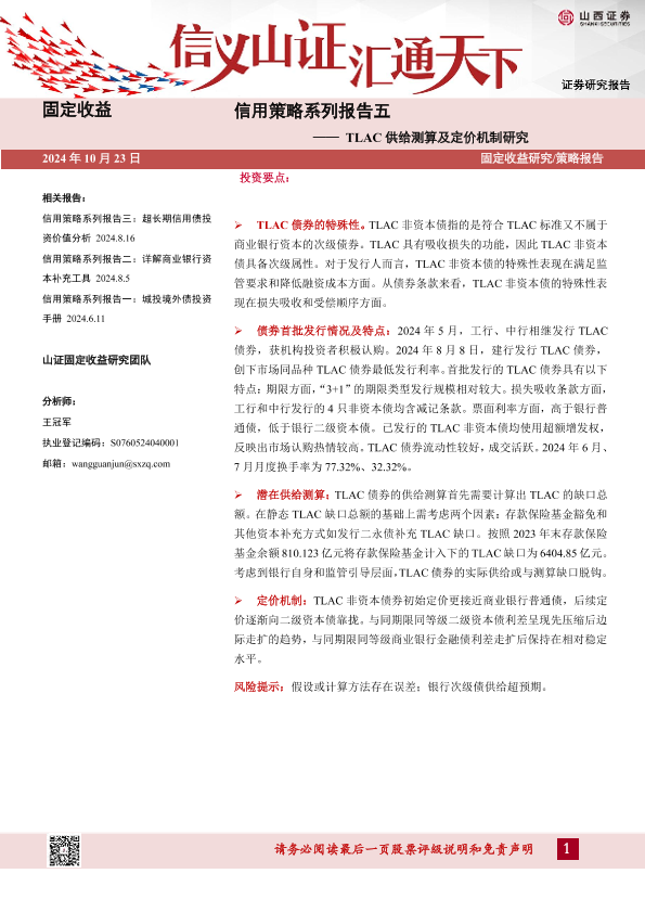 【山西证券】【20241023】信用策略系列报告五:TLAC供给测算及定价机制研究-15页