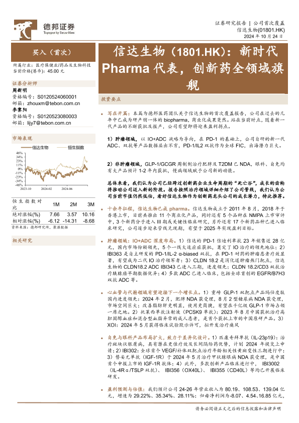 【德邦证券】【20241024】信达生物(01801.HK)新时代Pharma代表,创新药全领域旗舰-52页