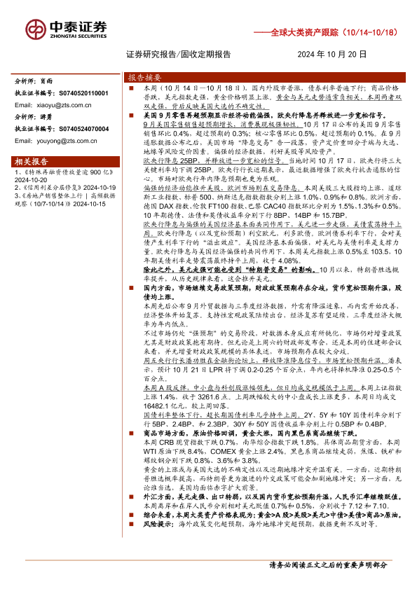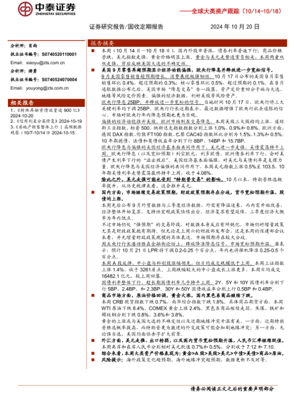 【中泰证券】【20241020】全球大类资产跟踪(10/14-10/18):美元指数与黄金均走强-11页
