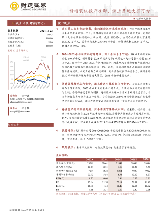 【财通证券】【20241023】华能水电(600025)新增装机投产在即,澜上基地大有可为-19页