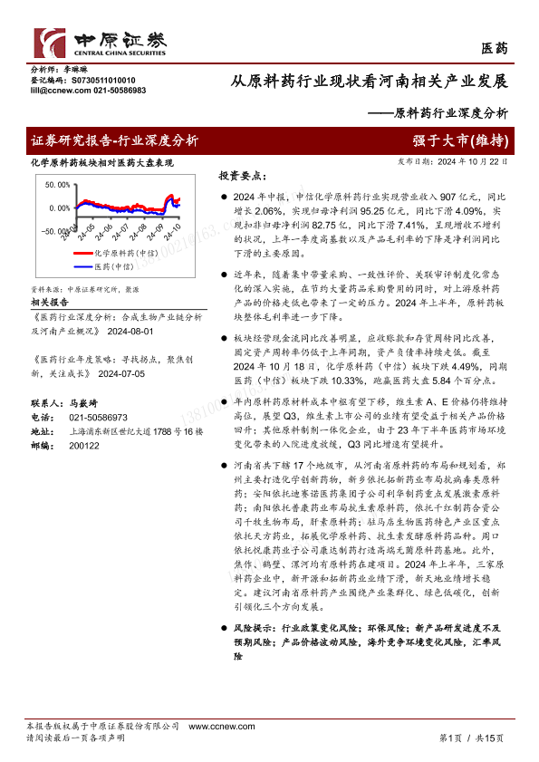 【中原证券】【20241022】原料药行业深度分析:从原料药行业现状看河南相关产业发展-15页