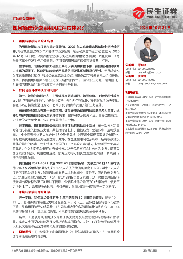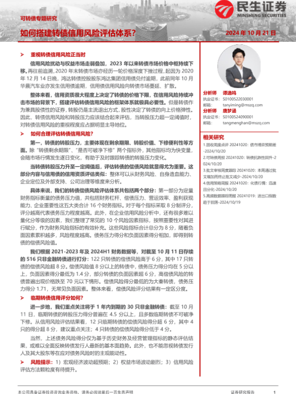【民生证券】【20241021】可转债专题研究:如何搭建转债信用风险评估体系?-14页