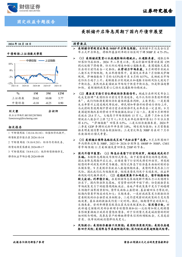 【财信证券】【20241018】固定收益专题报告:美联储开启降息周期下国内外债市展望-25页