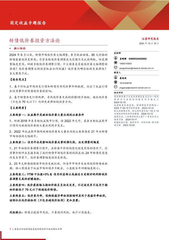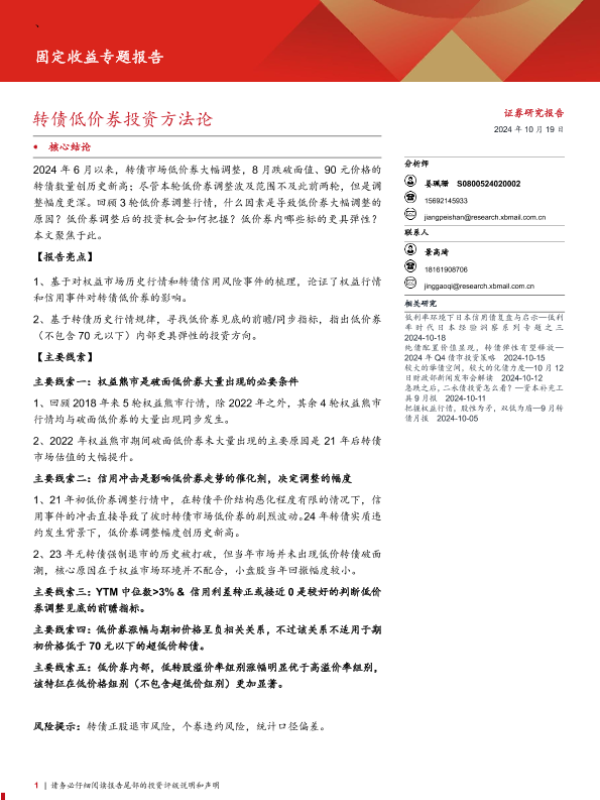 【西部证券】【20241019】固定收益专题报告:转债低价券投资方法论-21页