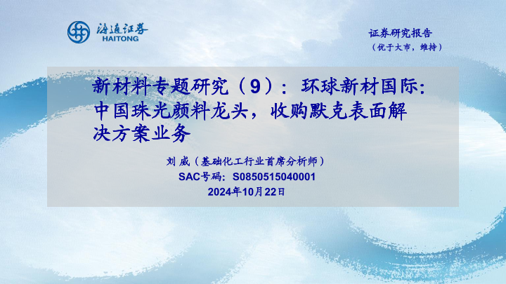 【海通证券】【20241022】基础化工行业新材料专题研究(9)-环球新材国际:中国珠光颜料龙头,收购默克表面解决方案业务-40页
