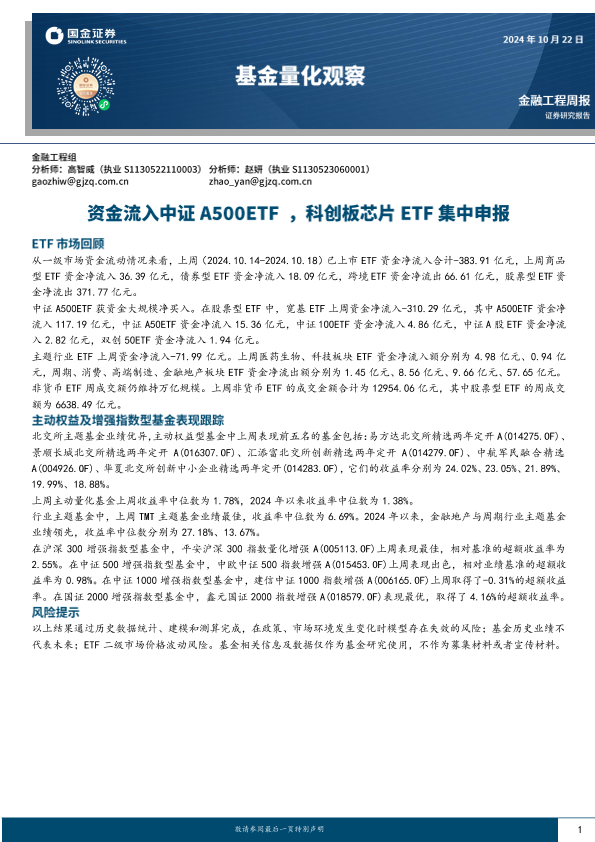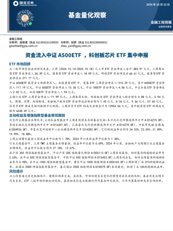 【国金证券】【20241022】基金量化观察:资金流入中证A500ETF+, 科创板芯片ETF集中申报-10页