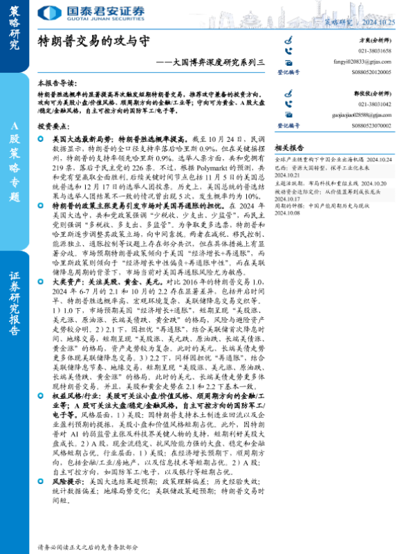 【国泰君安证券】【20241025】大国博弈深度研究系列三:特朗普交易的攻与守-11页