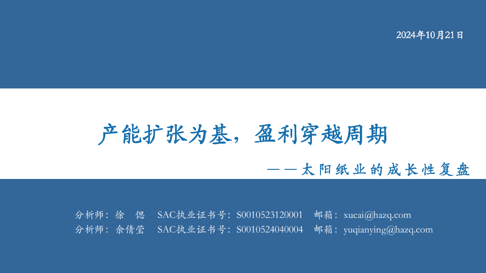 【华安证券】【20241021】太阳纸业的成长性复盘:产能扩张为基,盈利穿越周期-33页