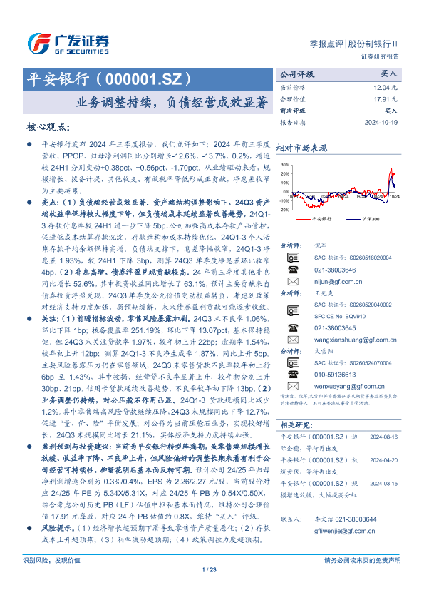 【广发证券】【20241019】平安银行(000001)业务调整持续,负债经营成效显著-23页