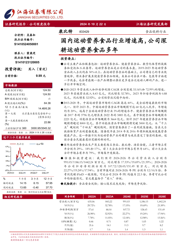 【江海证券】【20241022】康比特(833429)国内运动营养食品行业增速高,公司深耕运动营养食品多年-19页