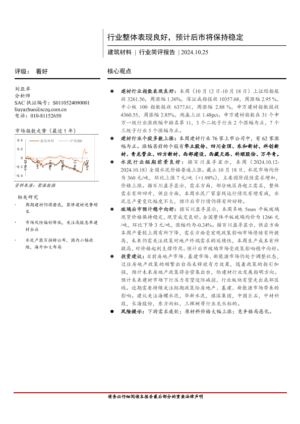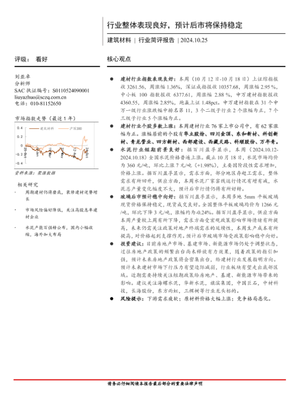【首创证券】【20241025】建筑材料行业简评报告:行业整体表现良好,预计后市将保持稳定-19页