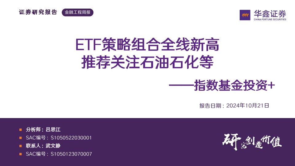 【华鑫证券】【20241021】指数基金投资+ ETF策略组合全线新高,推荐关注石油石化等-28页