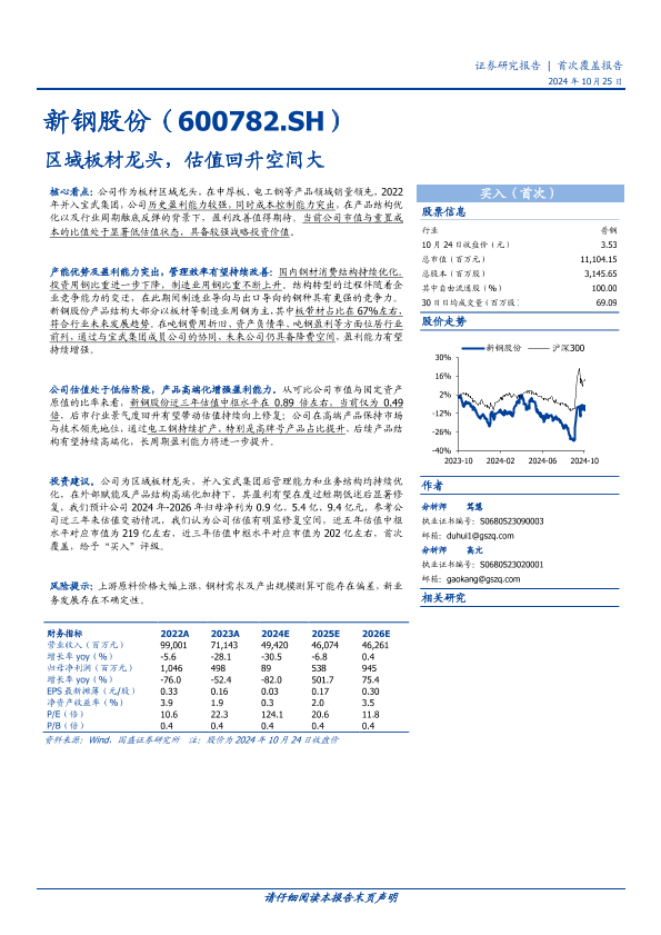 【国盛证券】【20241025】新钢股份(600782)区域板材龙头,估值回升空间大-28页