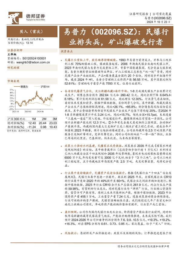 【德邦证券】【20241023】易普力(002096)民爆行业排头兵,矿山爆破先行者-27页