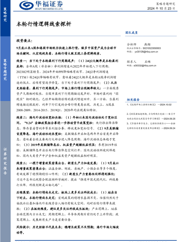 【华福证券】【20241023】本轮行情逻辑线索探析-14页