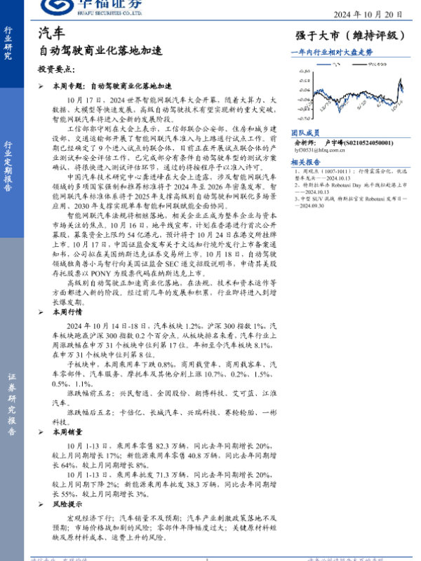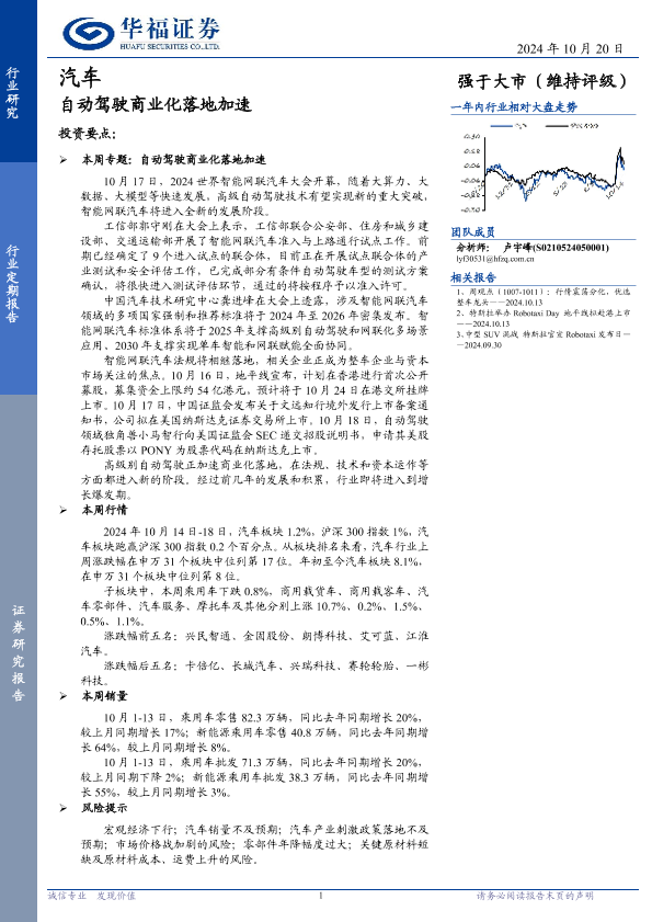 【华福证券】【20241020】汽车行业定期报告:自动驾驶商业化落地加速-12页