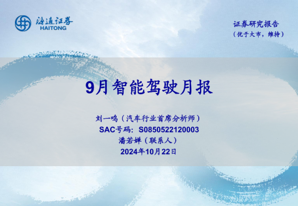 【海通证券】【20241022】汽车行业:9月智能驾驶月报-15页