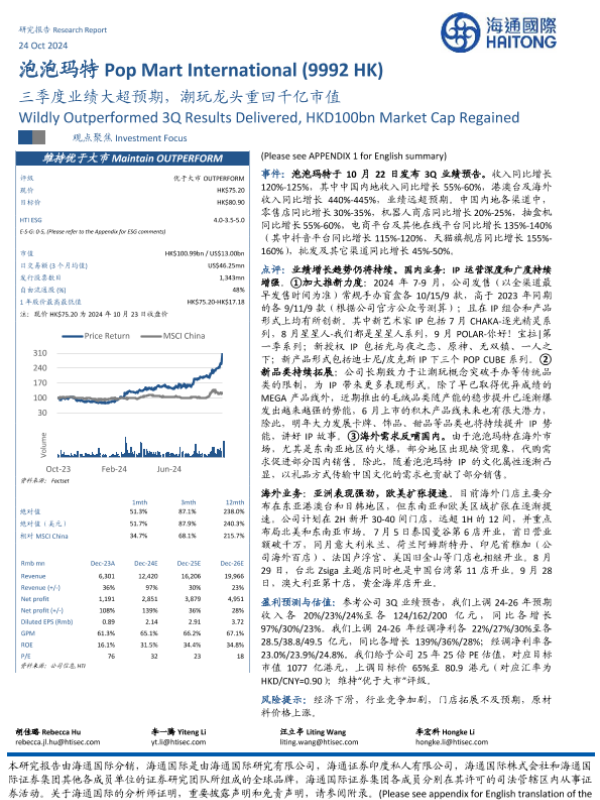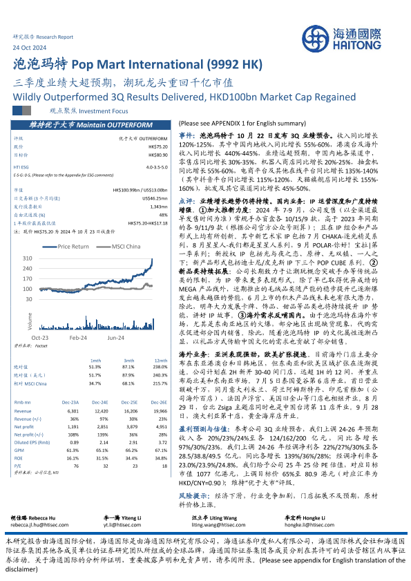 【海通国际】【20241024】泡泡玛特(09992.HK)三季度业绩大超预期,潮玩龙头重回千亿市值-13页