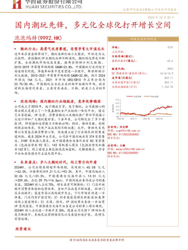 【华西证券】【20241022】泡泡玛特(9992.HK)国内潮玩先锋,多元化全球化打开增长空间-38页