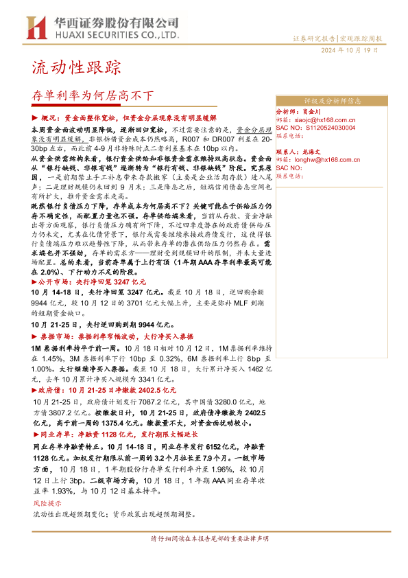 【华西证券】【20241019】流动性跟踪:存单利率为何居高不下-21页