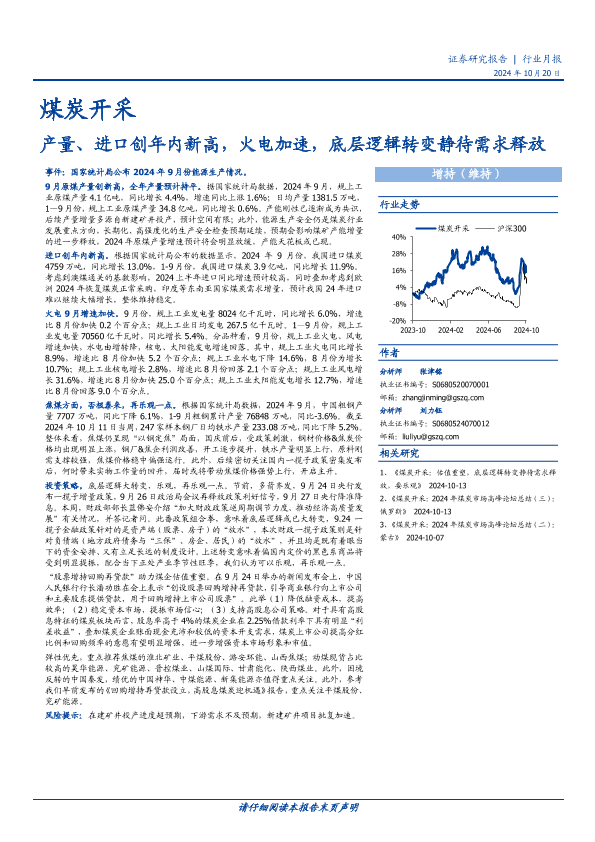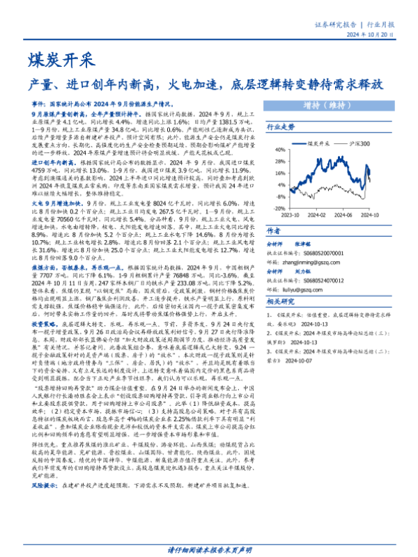【国盛证券】【20241020】煤炭开采行业月报:产量、进口创年内新高,火电加速,底层逻辑转变静待需求释放-10页