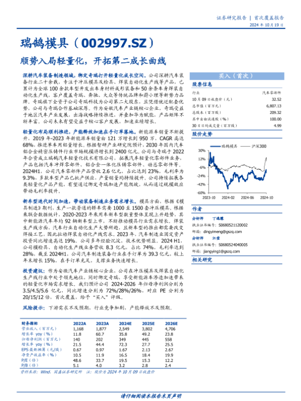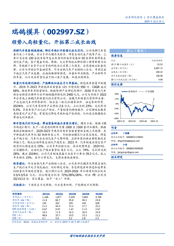 【国盛证券】【20241019】瑞鹄模具(002997)顺势入局轻量化,开拓第二成长曲线-16页