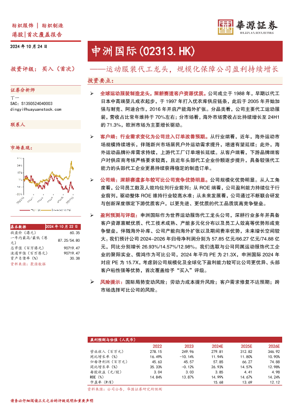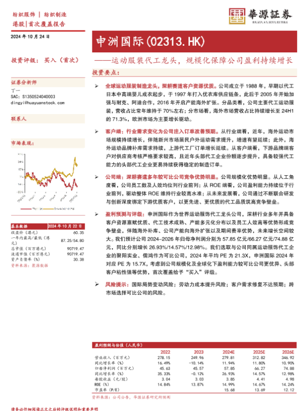 【华源证券】【20241024】申洲国际(02313.HK)运动服装代工龙头,规模化保障公司盈利持续增长-21页