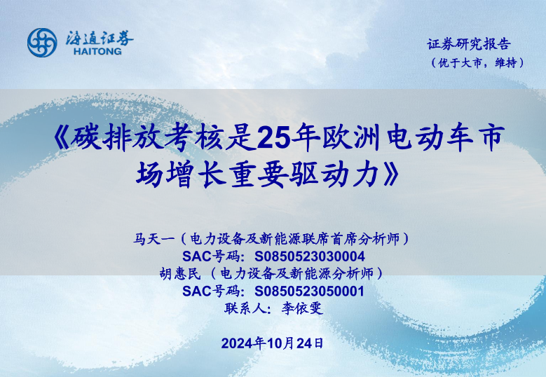 【海通证券】【20241024】碳排放考核是25年欧洲电动车市场增长重要驱动力-44页