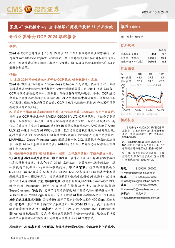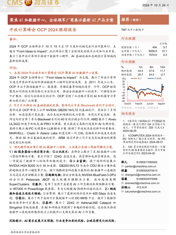 【海通证券】【20241024】电子行业开放计算峰会OCP+2024跟踪报告:聚焦AI和数据中心,全球领军厂商展示最新AI产品方案-21页