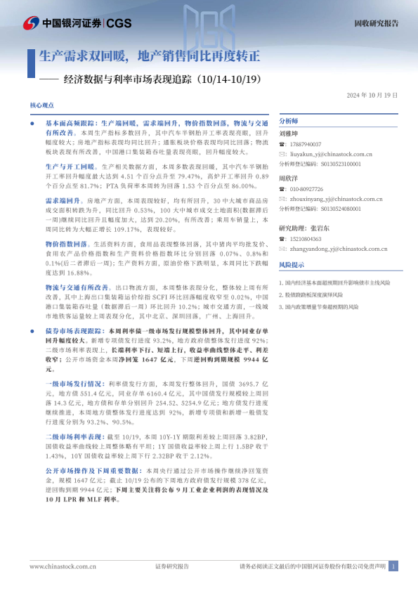 【银河证券】【20241019】经济数据与利率市场表现追踪:生产需求双回暖,地产销售同比再度转正-12页