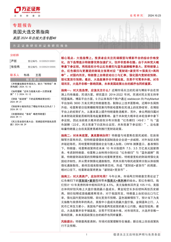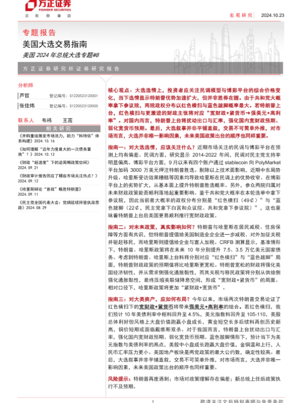 【方正证券】【20241023】美国2024年总统大选专题:美国大选交易指南-22页