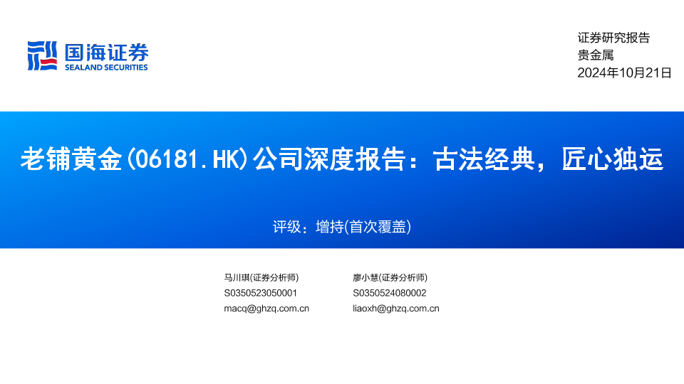 【国海证券】【20241021】老铺黄金(6181.HK)公司深度报告:古法经典,匠心独运-40页