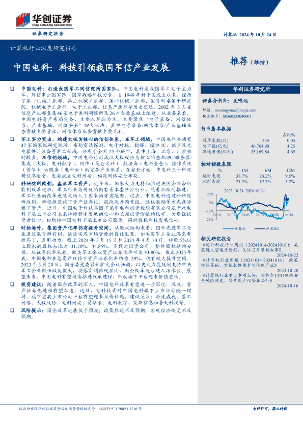 【华创证券】【20241024】计算机行业深度研究报告-中国电科:科技引领我国军信产业发展-24页