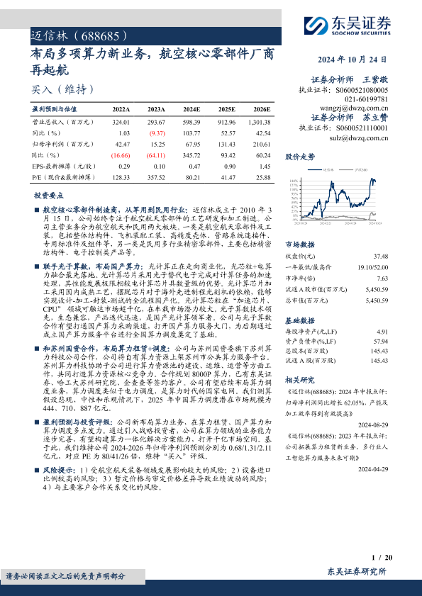 【东吴证券】【20241024】迈信林(688685)布局多项算力新业务,航空核心零部件厂商再起航-20页