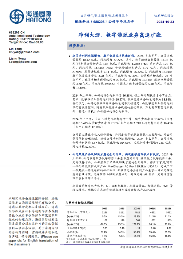 【海通国际】【20241023】道通科技(688208)公司半年报点评:净利大涨,数字能源业务高速扩张-13页